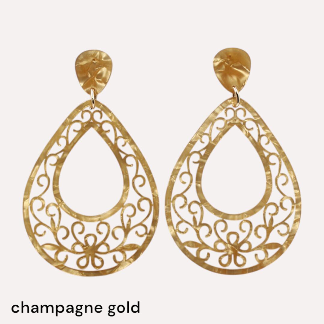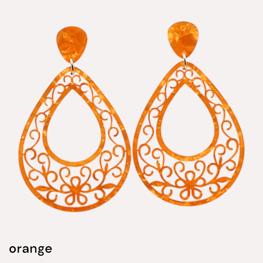 フラメンコ ピアス しずく型 透かし模様 全9色 1077