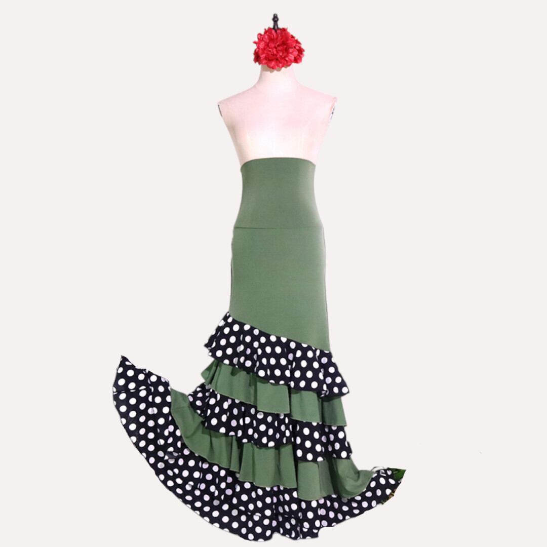 フラメンコ ファルダ 衣装 オリーブグリーン/黒 水玉フリル 1142