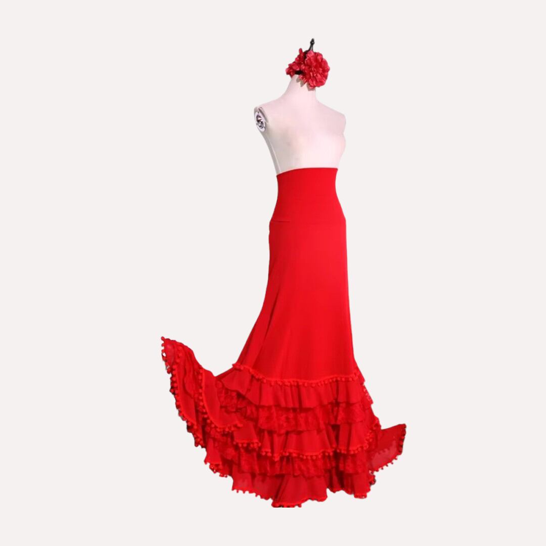 フラメンコ ファルダ 衣装 赤 無地 1168
