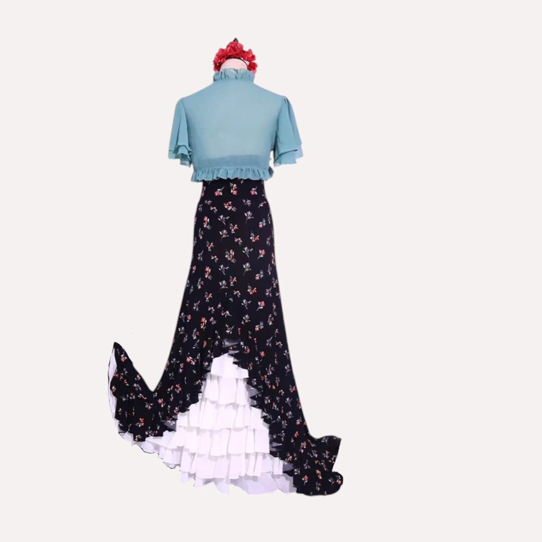 フラメンコ ファルダ 衣装 黒系 花柄 1175