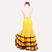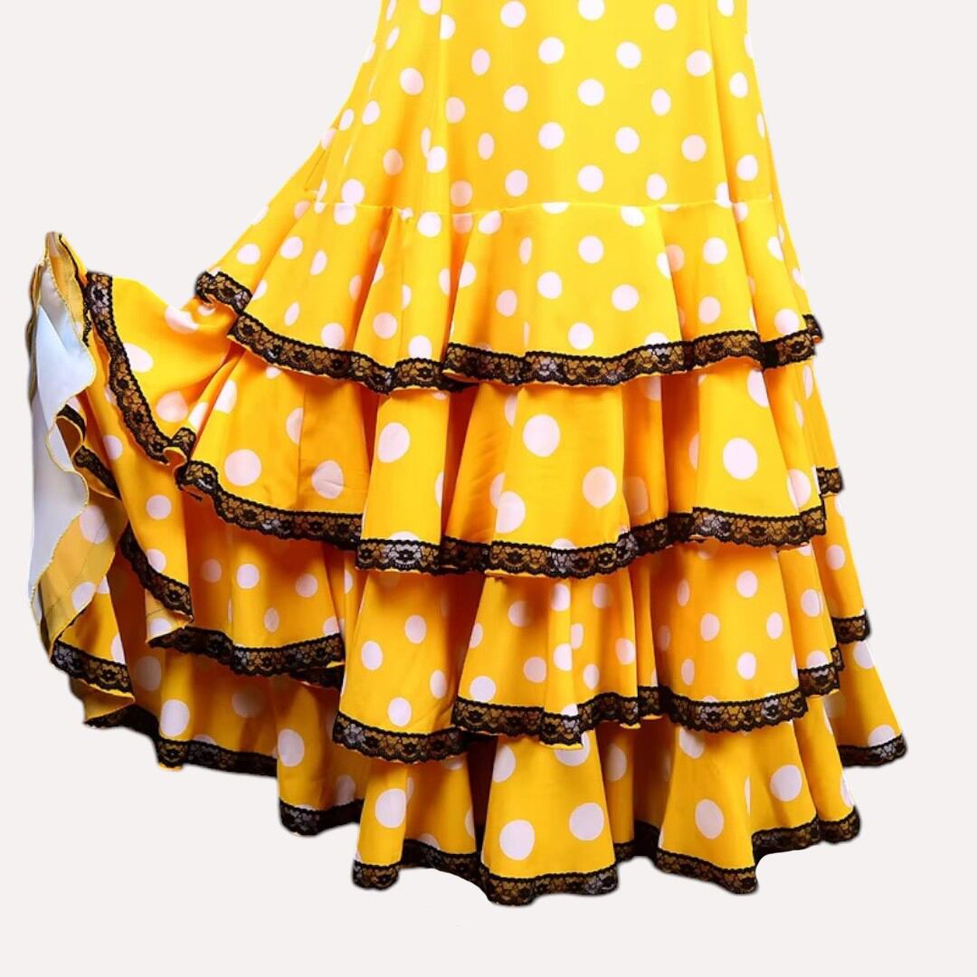 フラメンコ ファルダ 衣装 黄/黒 水玉 1202