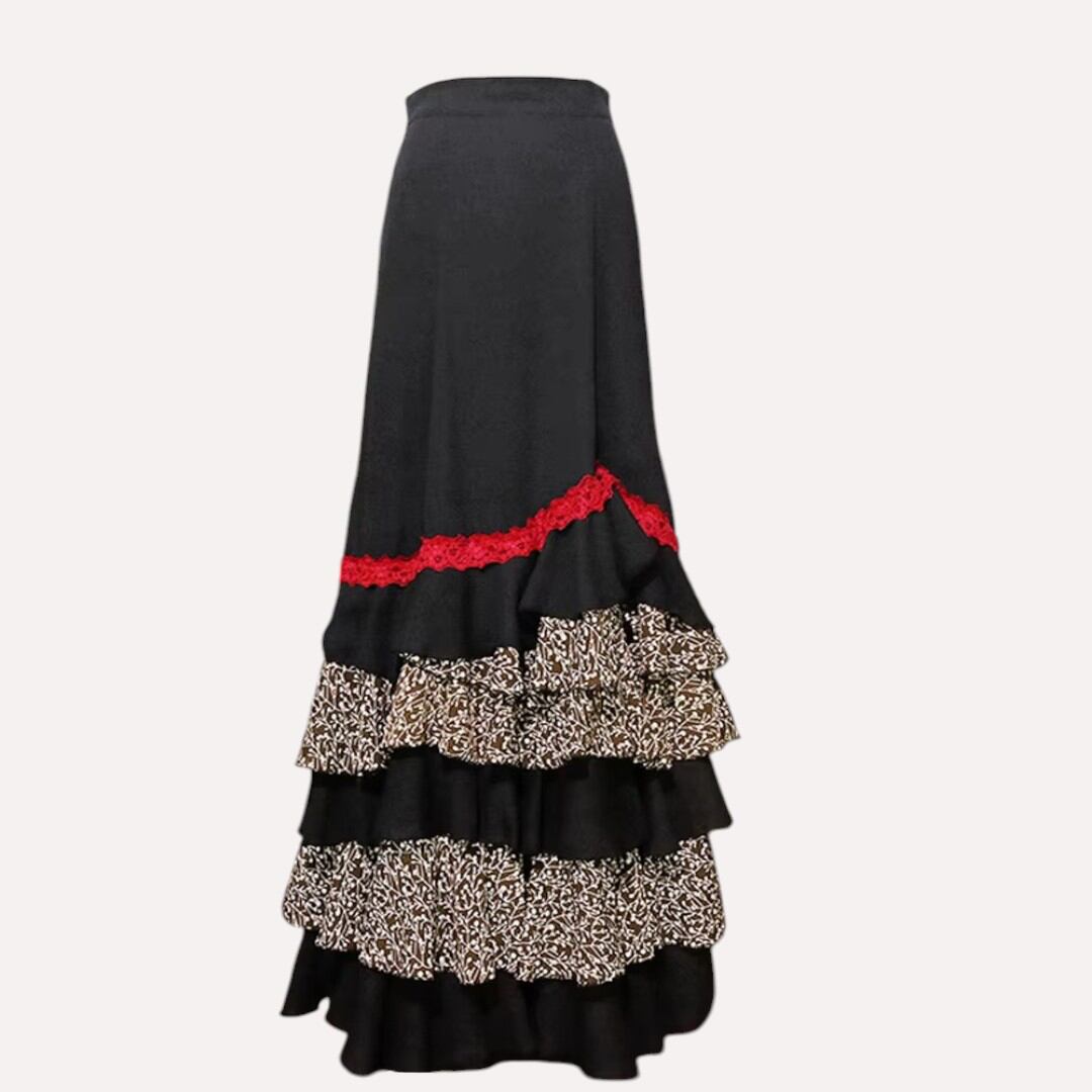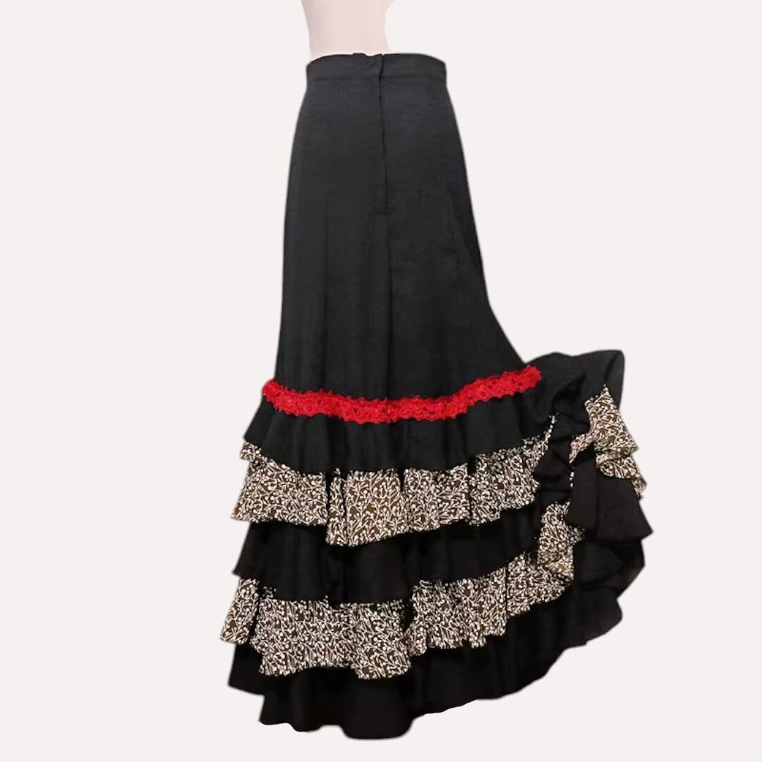 フラメンコ ファルダ 衣装 黒/エスニック柄 1211
