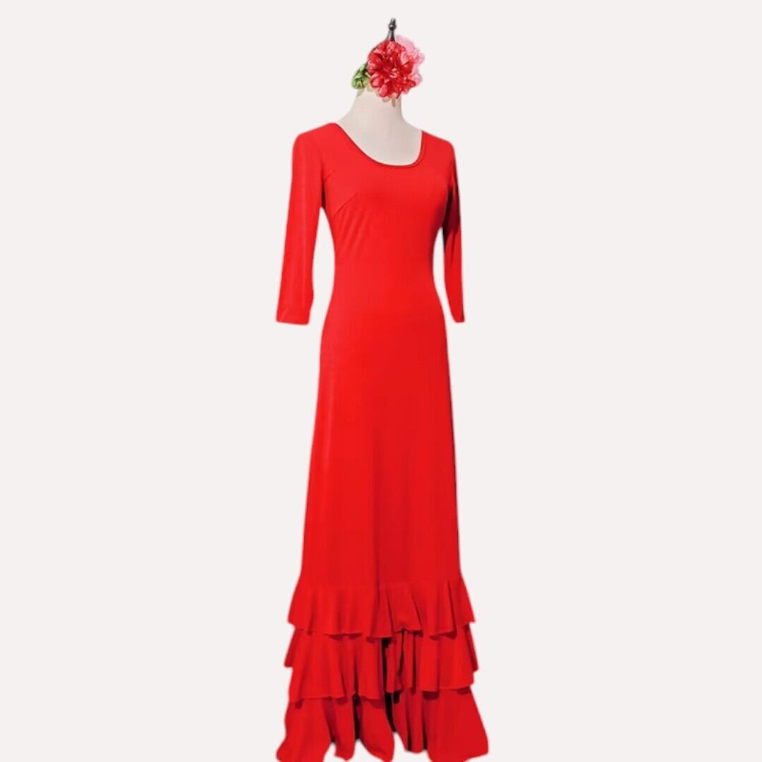 フラメンコ 長袖ワンピース 衣装 赤 無地 1219
