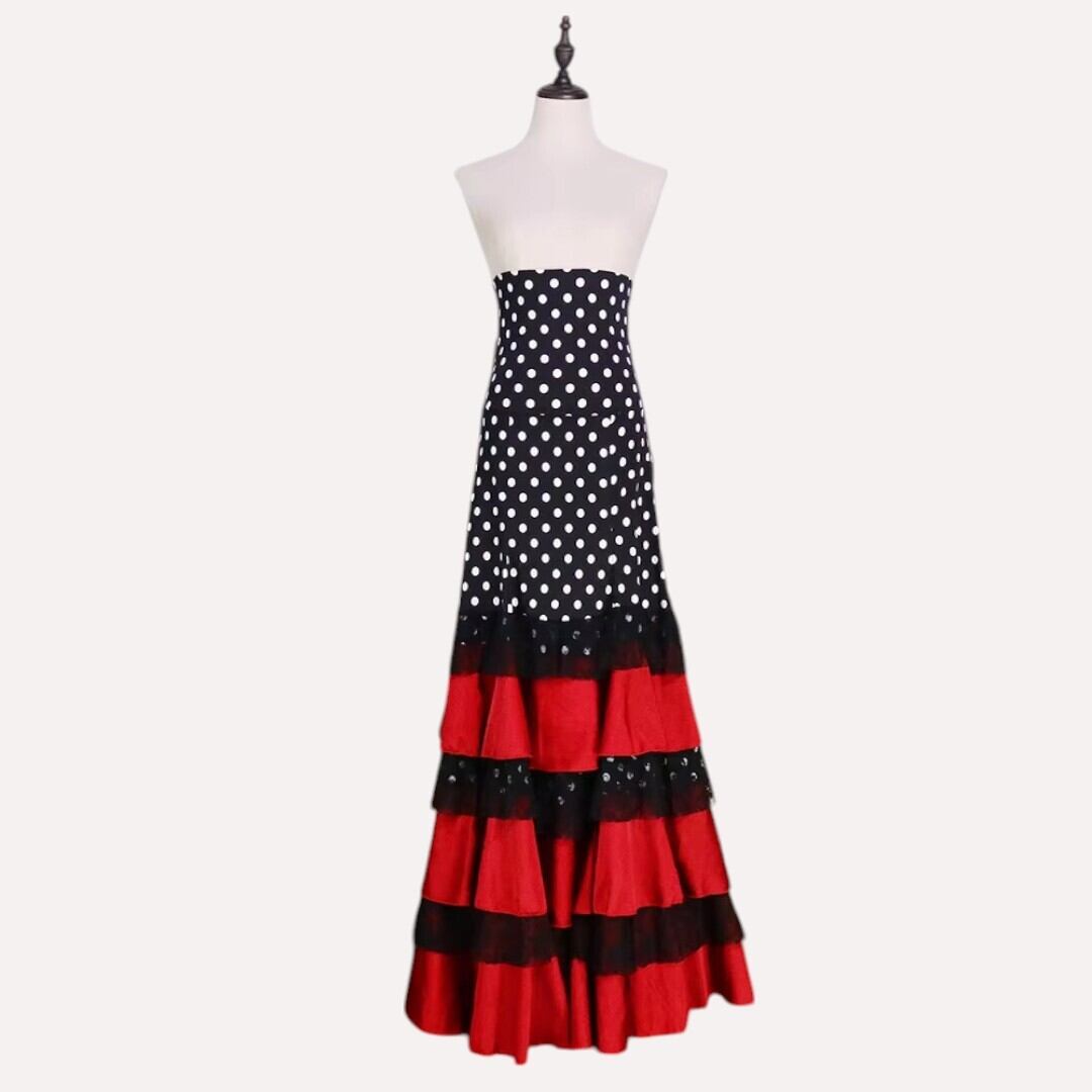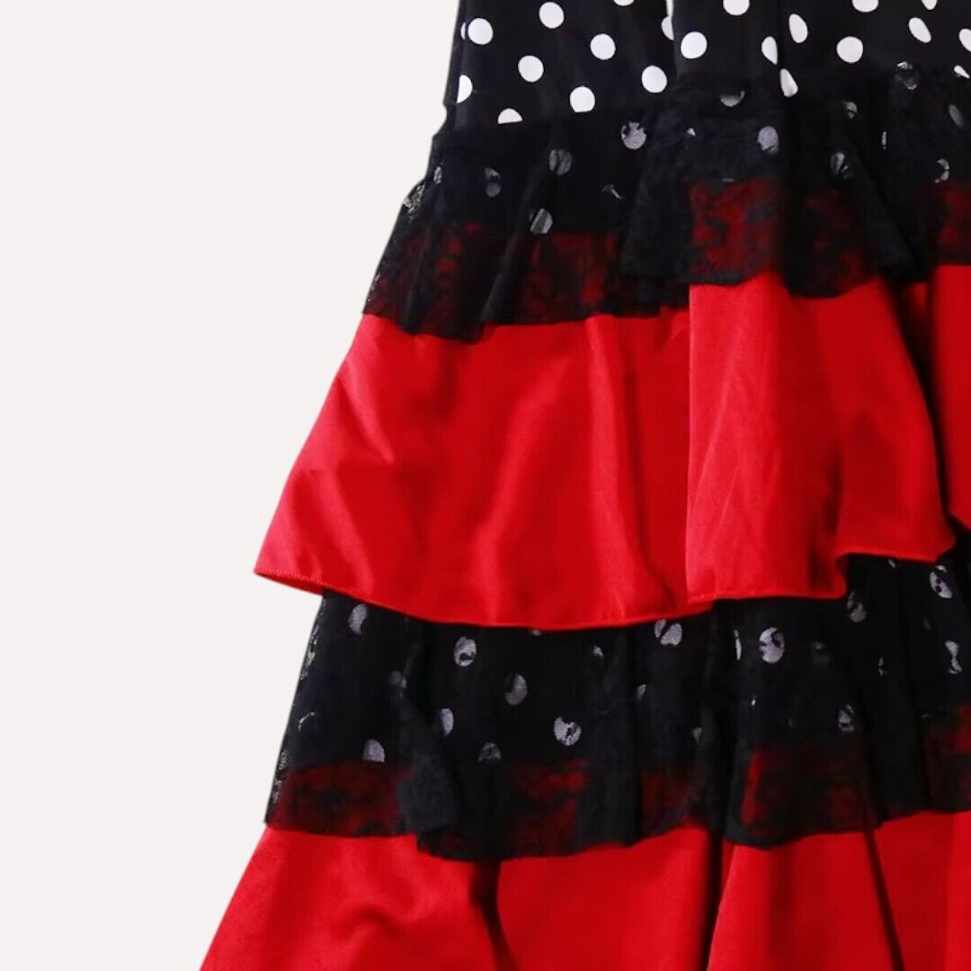フラメンコ ファルダ 衣装 黒/白 水玉 赤フリル 1242