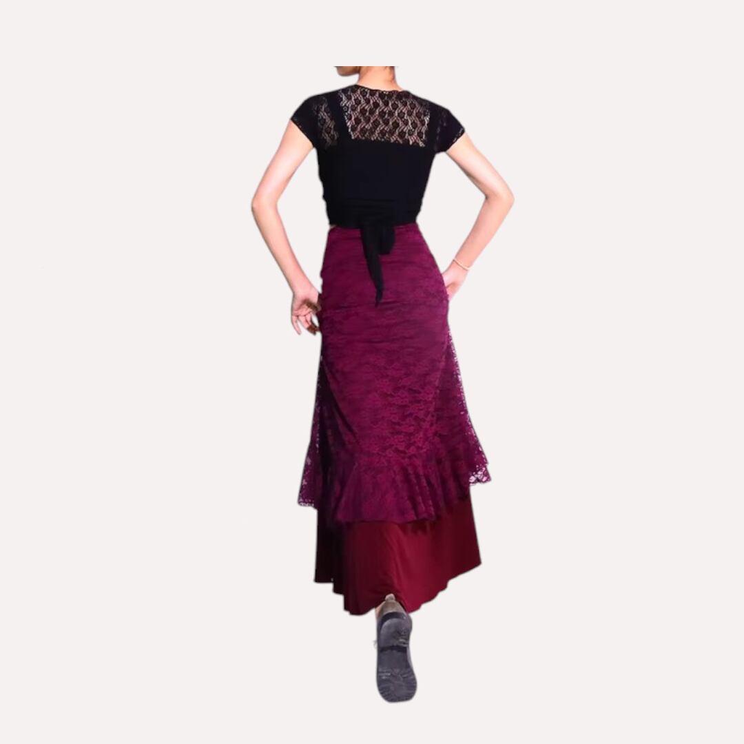 フラメンコ ファルダ 衣装 バーガンディ/黒 レース 1269