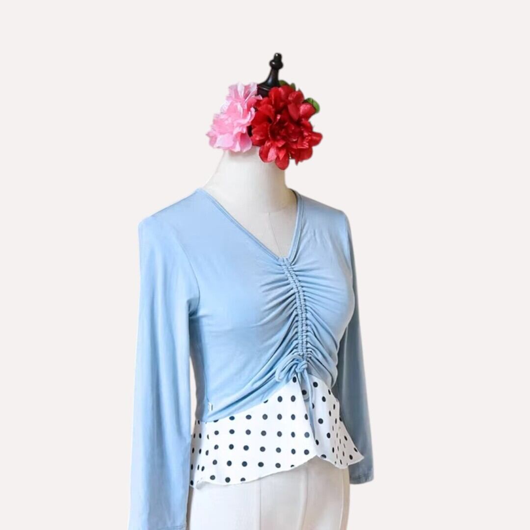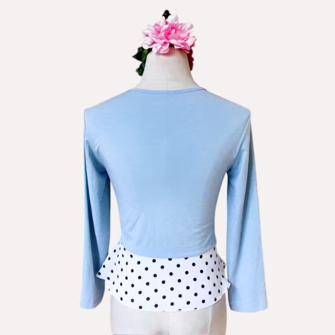 フラメンコ トップス 衣装 ライトブルー 切り替え 水玉 1282