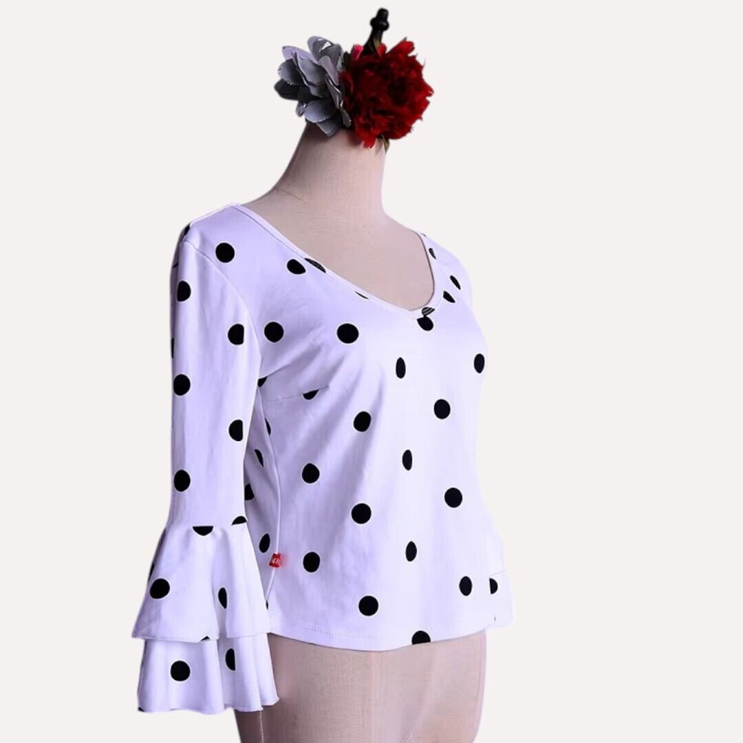 フラメンコ トップス 衣装 白/黒 水玉 1284