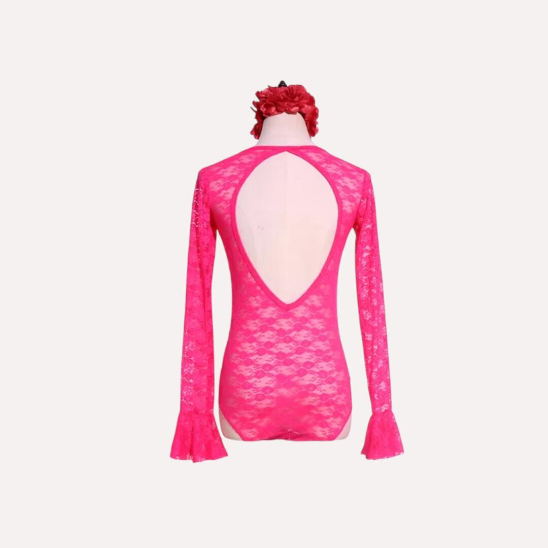 フラメンコ トップス 衣装 レオタードタイプ ホットピンク 1291