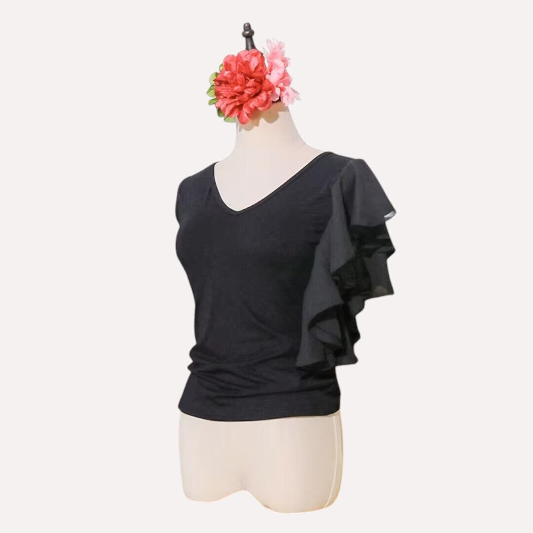 フラメンコ トップス 衣装 黒 無地 水玉フリルアシメ袖 フリル 1300