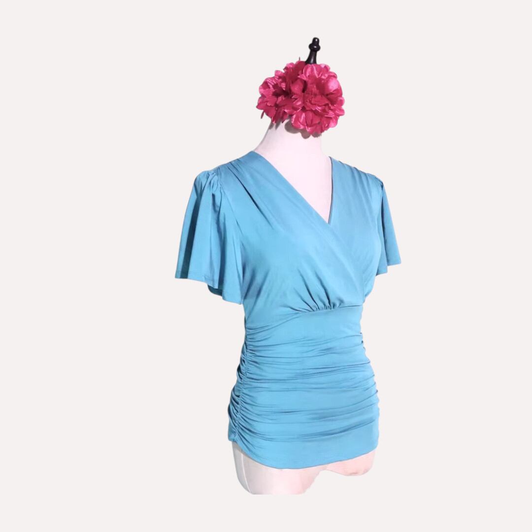 フラメンコ トップス 衣装 ティールブルー 無地 1290