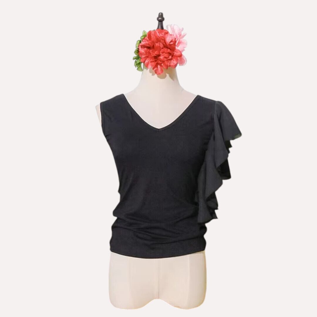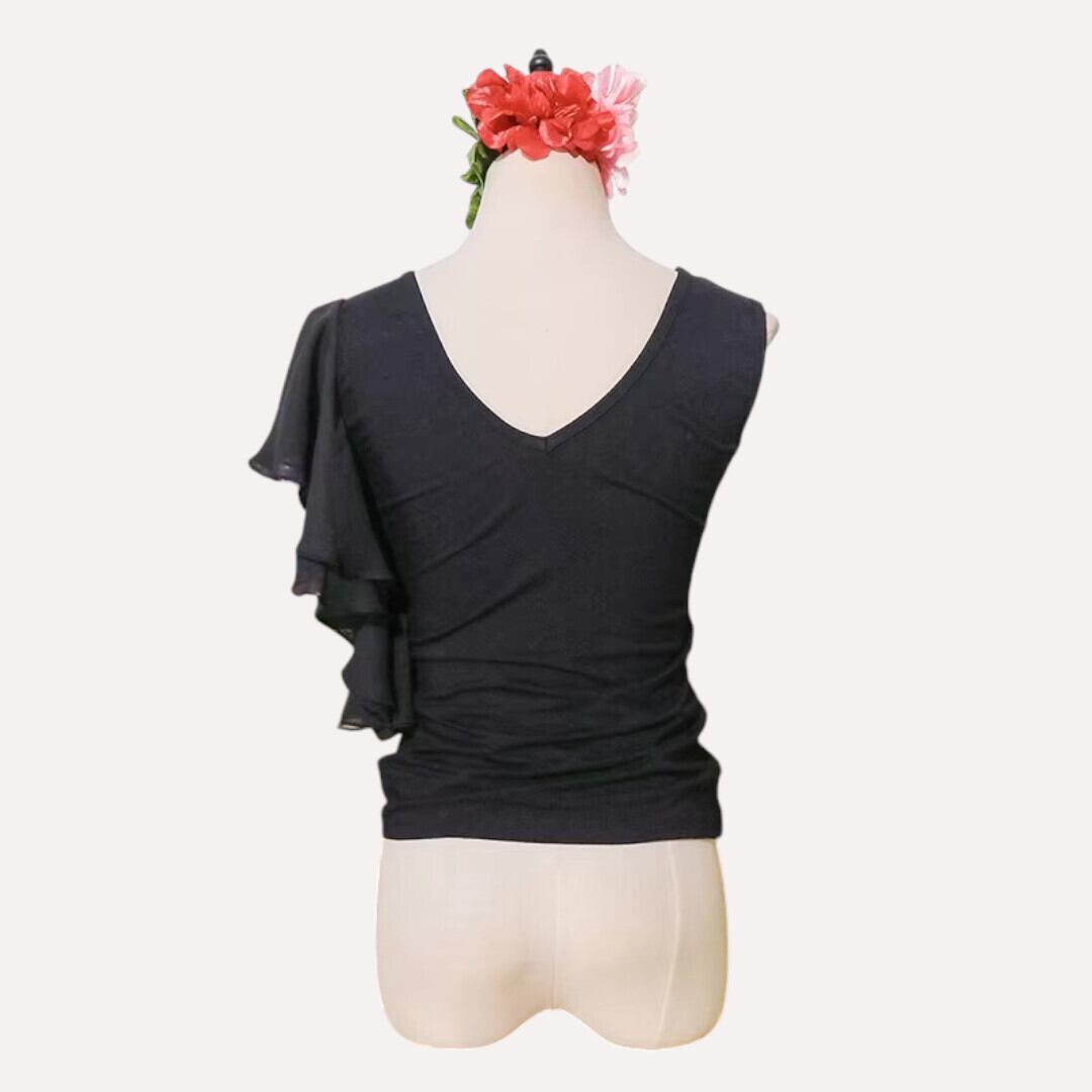 フラメンコ トップス 衣装 黒 無地 水玉フリルアシメ袖 フリル 1300