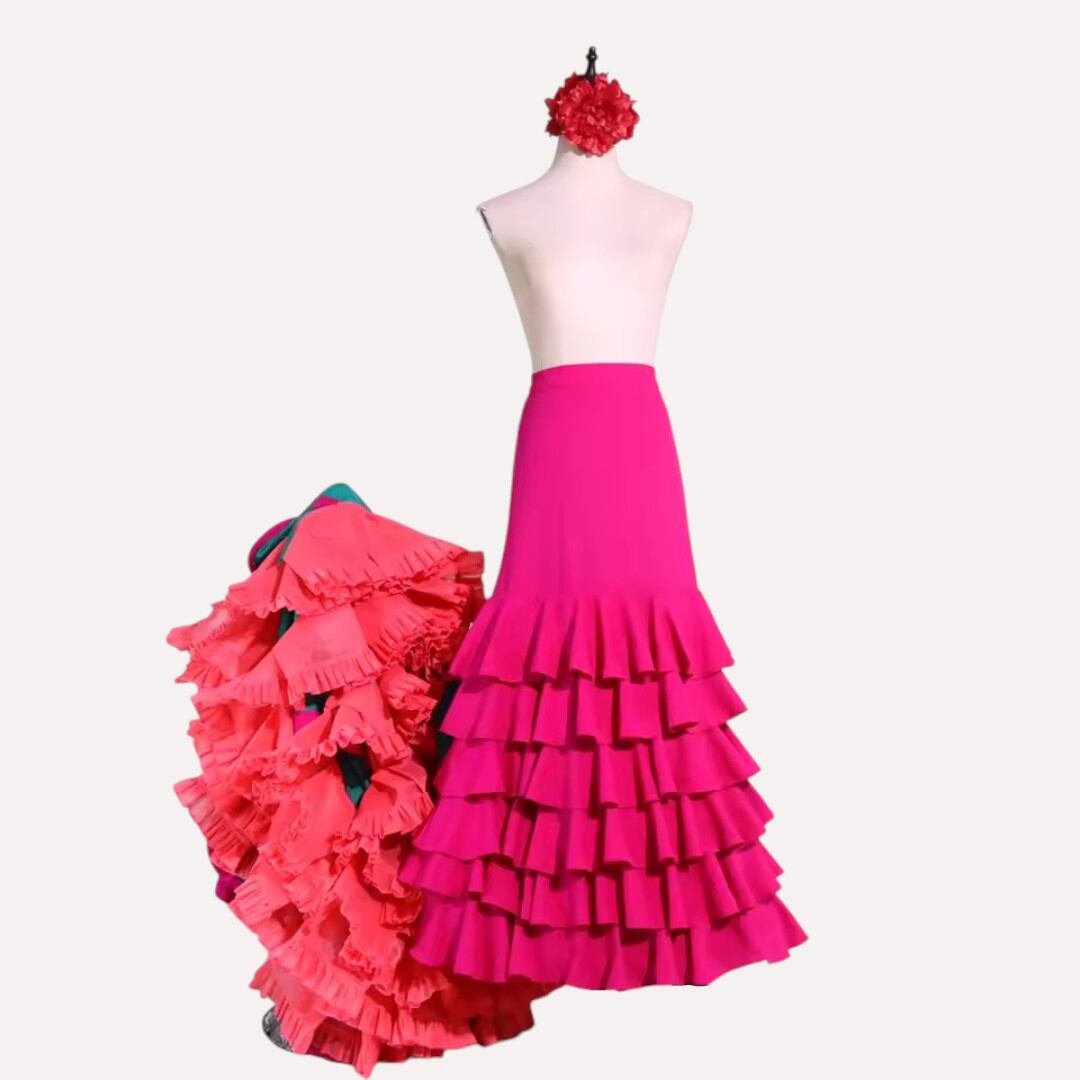 フラメンコ バタ・デ・コーラ ビビットピンク/グリーン 衣装 1376